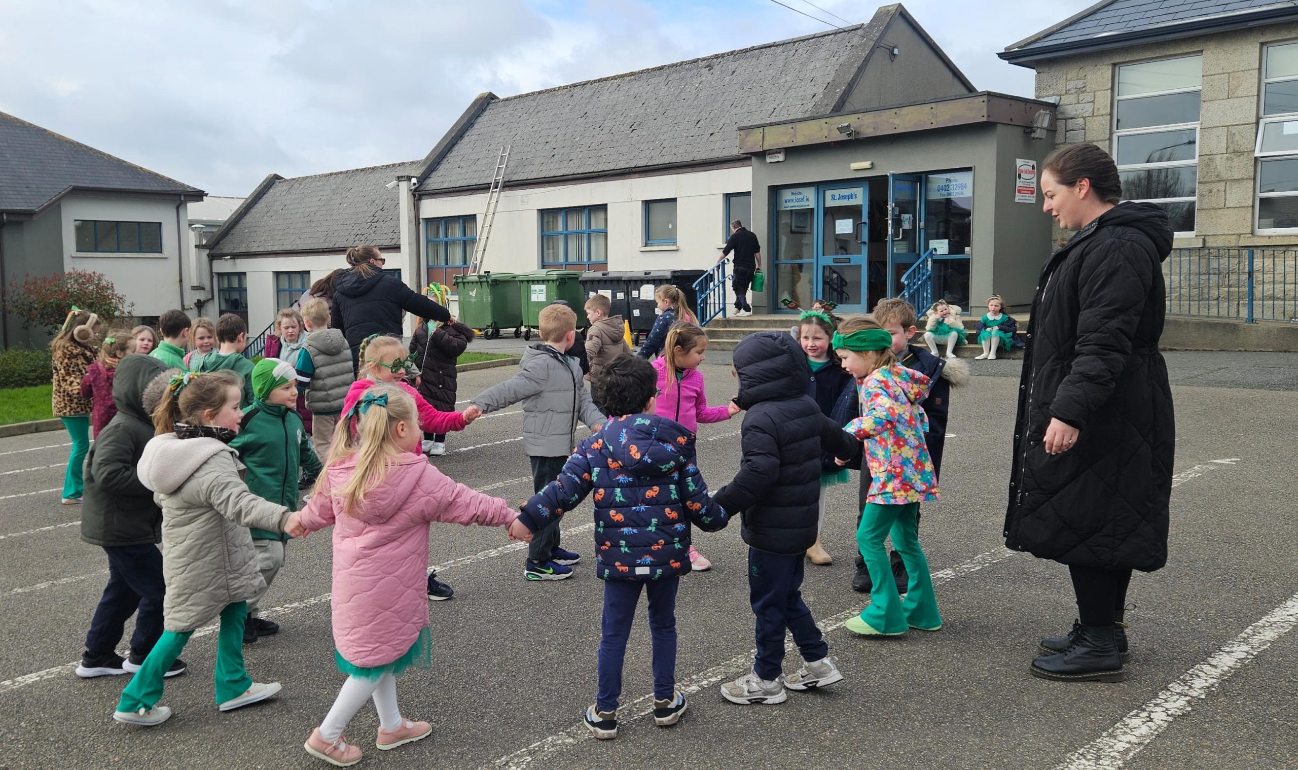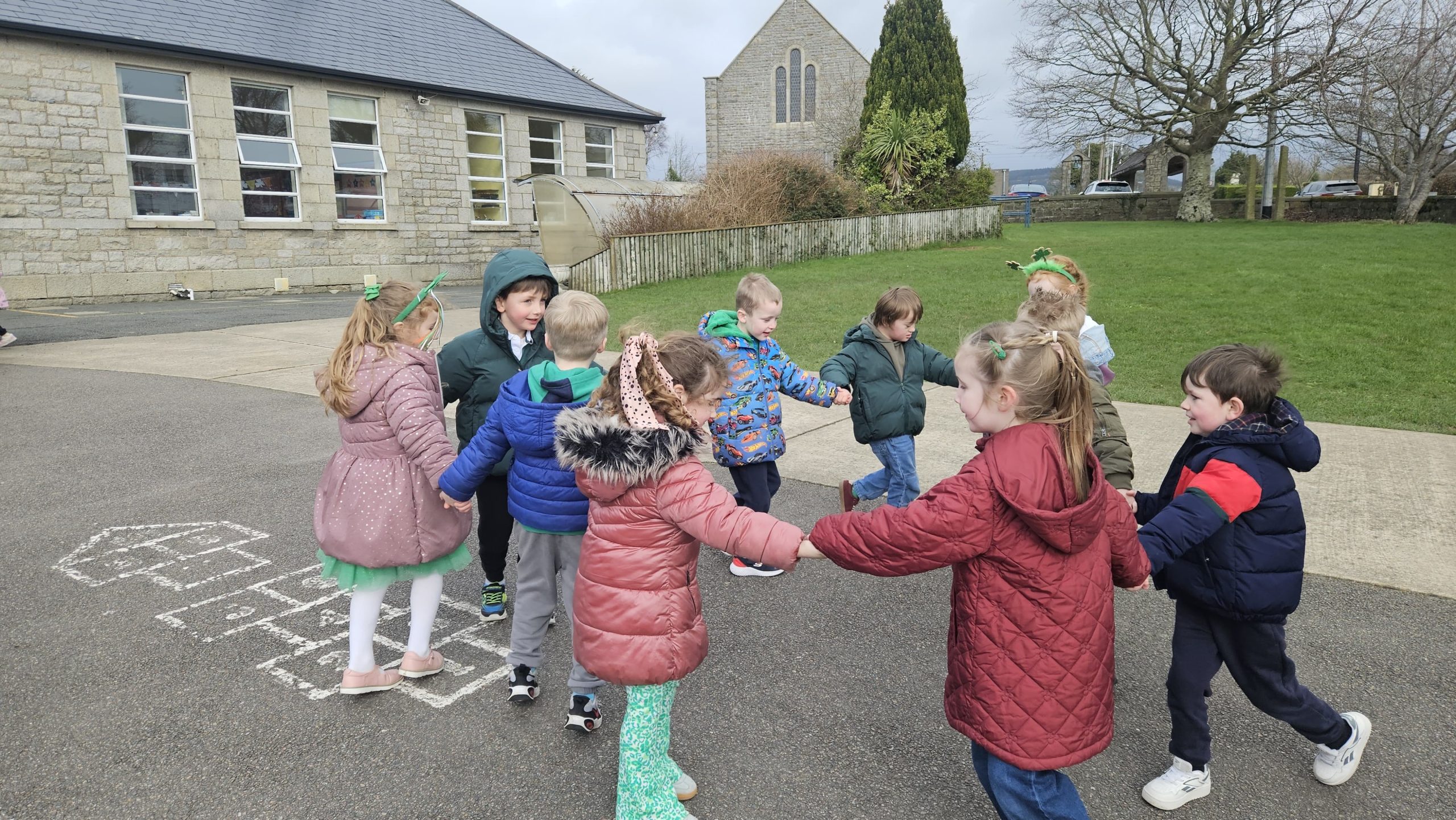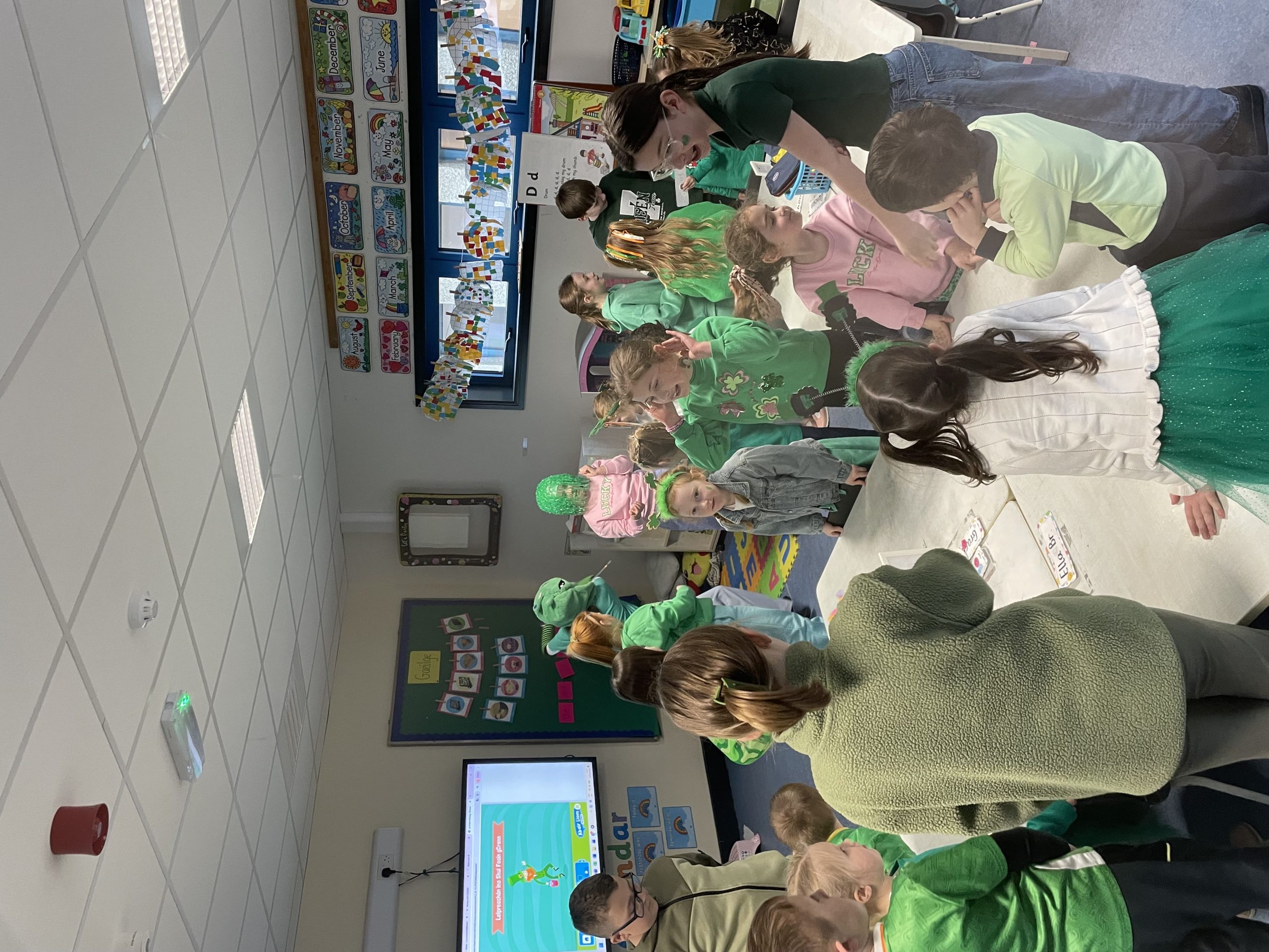 Bhí Seachtain na Gaeilge den scoth againn go léir. Rinne An Coiste an obair, fíor bhuíoch díbh. Ghlac Rang a trí go Rang a Sé páirt i dTráth na gCeist sa halla. Bhain gach duine taitneamh as. D’imigh Rang a dó agus Rang a Trí ar Toraíocht Taisce. Bhí an-chraic acu. Tháinig na hardranganna ar chuairt do na bunranganna chun dánta agus rannta a dhéanamh leis na páistí. Bhí siad ar fheabhas! Ar an Aoine, bhí céilí mór againn sa chlós. Céilí iontach a bhí ann.