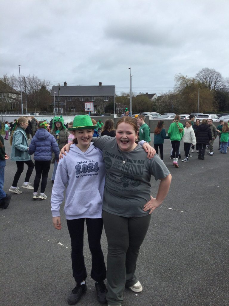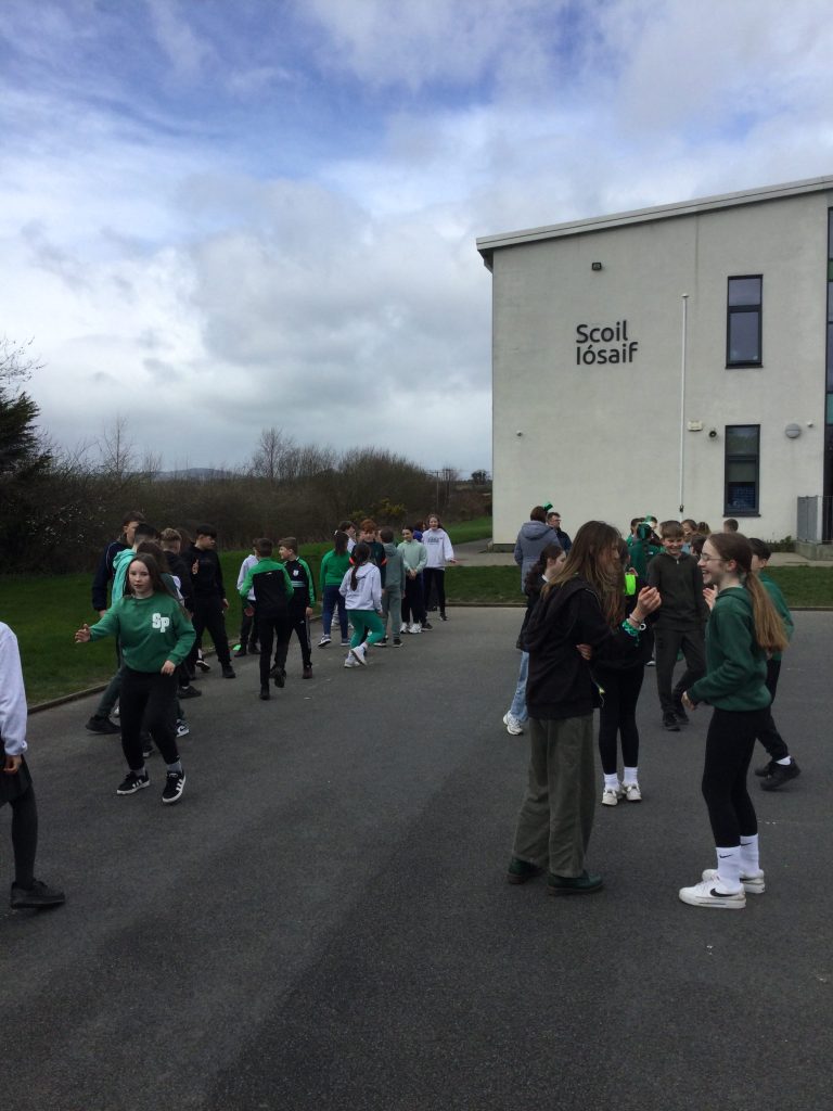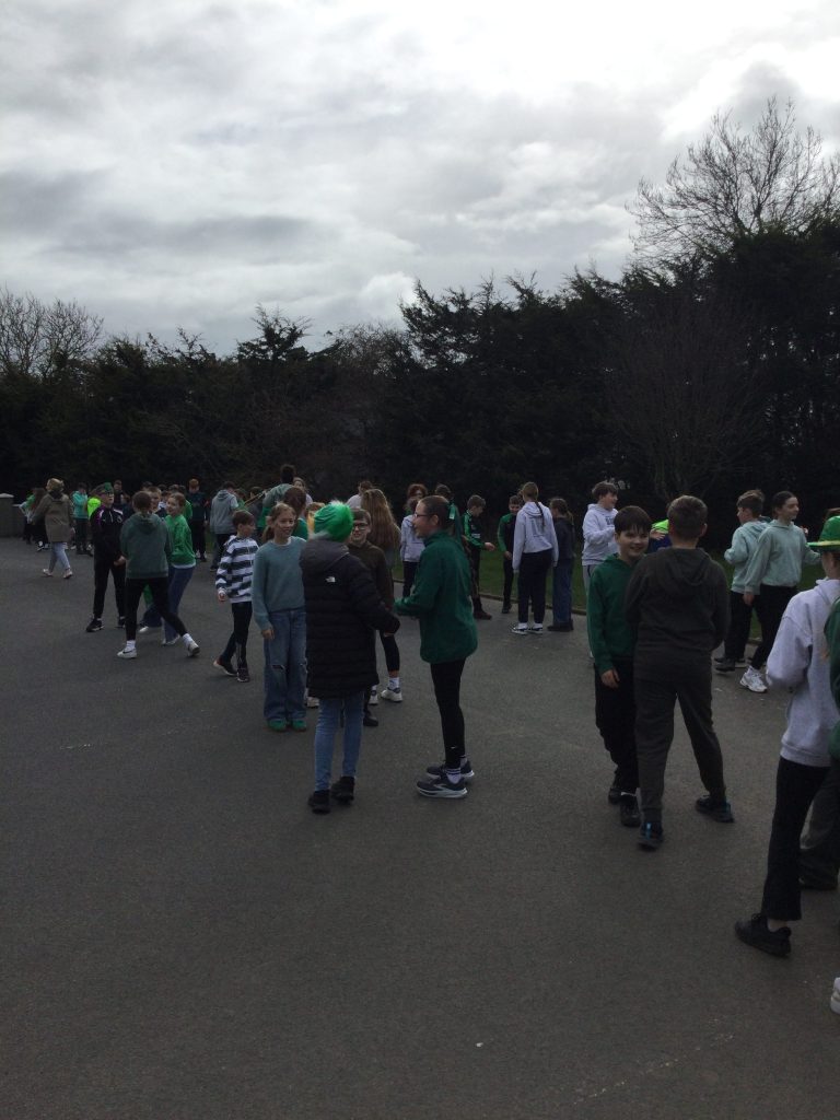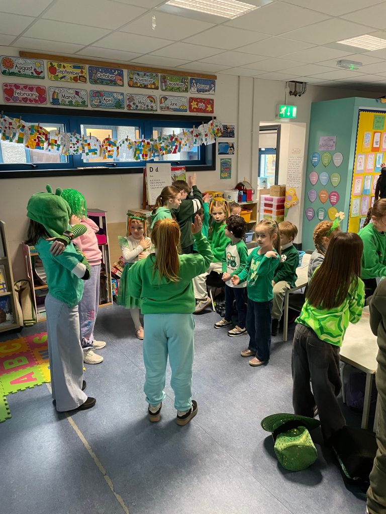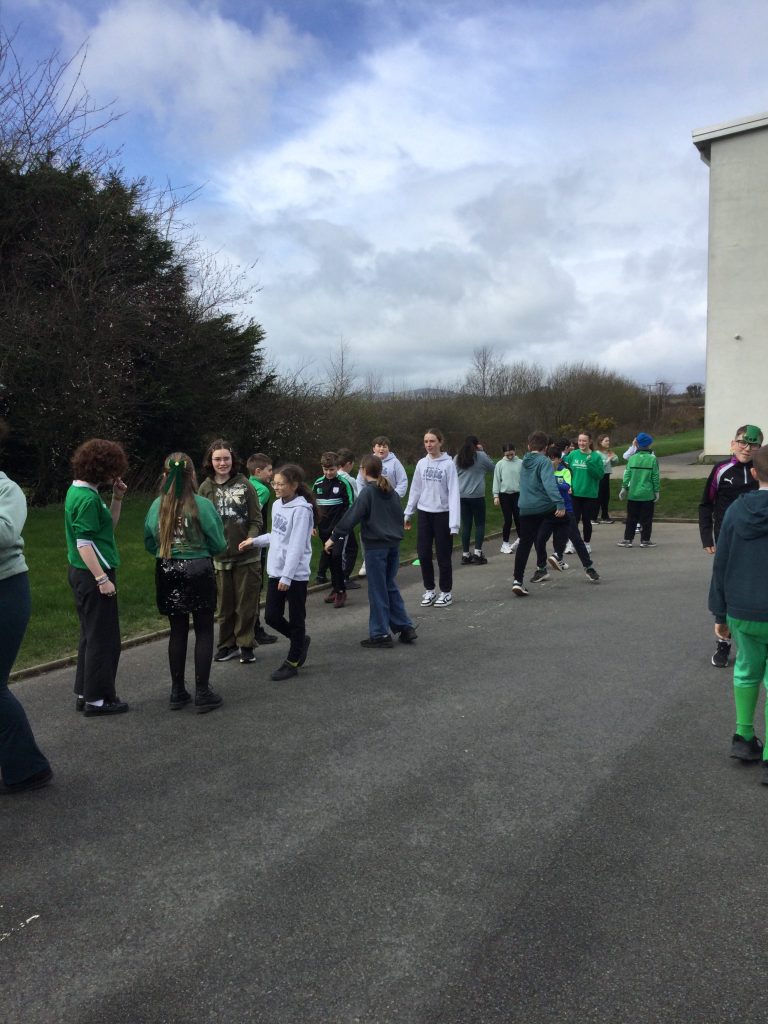 We all had a super Seachtain na Gaeilge. The Irish Committee did a fantastic job, with thanks to them. Third to Sixth class took part in a Table Quiz in the hall. Everyone really enjoyed it. Second and Third class went on a Treasure Hunt. They had great craic. The Senior classes visited the Junior classes to teach some poems and rhymes. They were excellent. On Friday we had a big céilí out in the yard. It was fabulous.