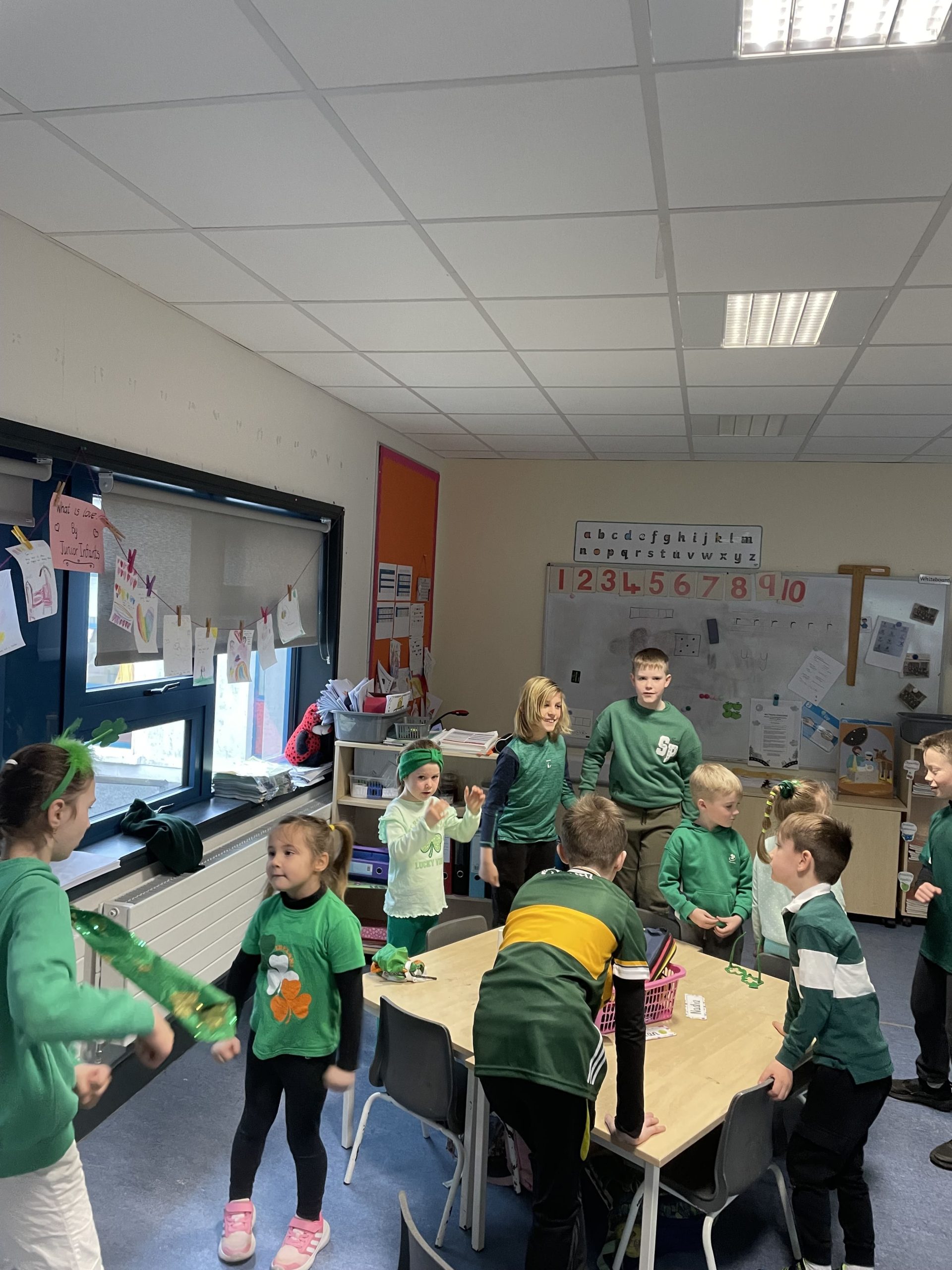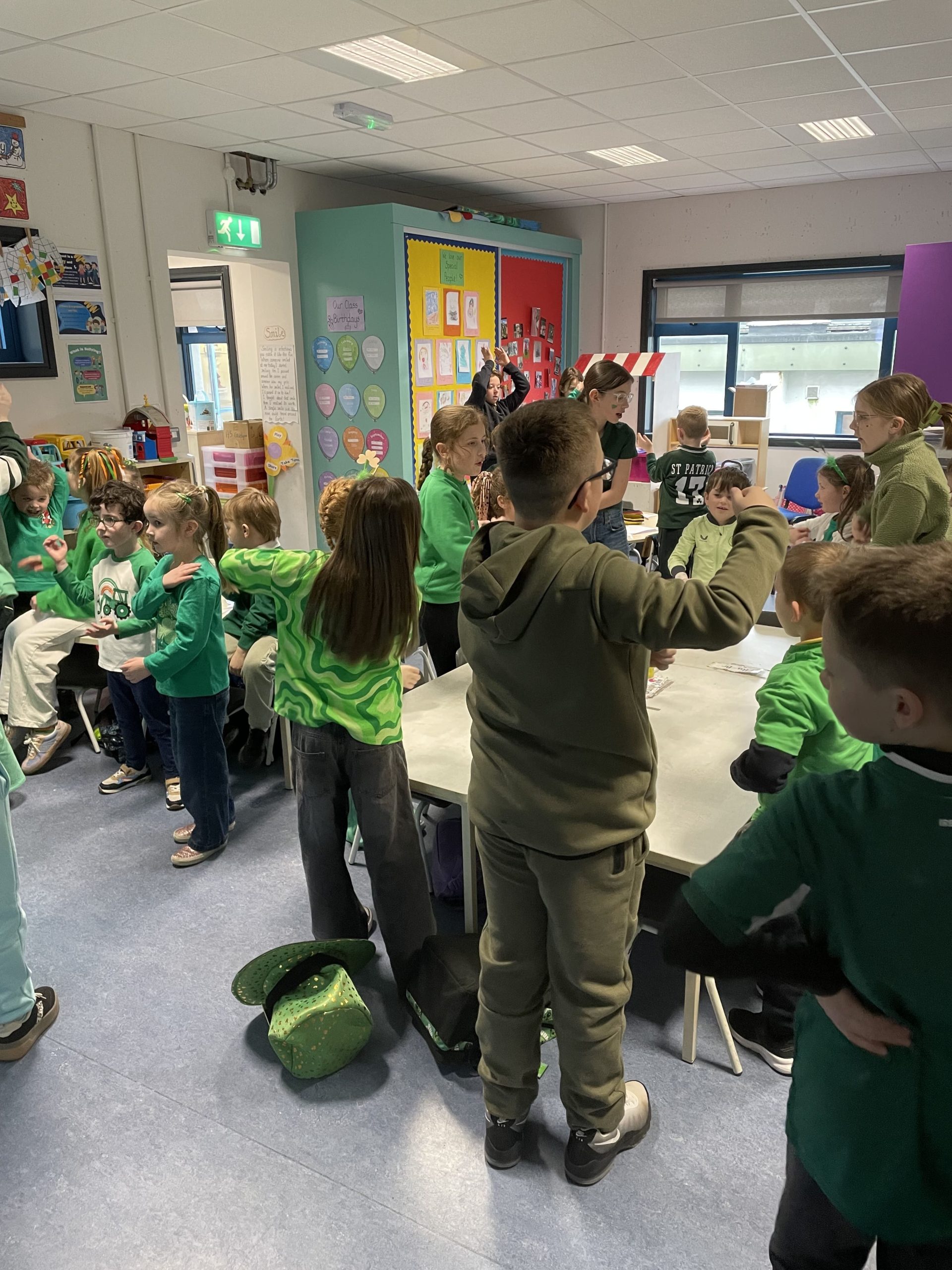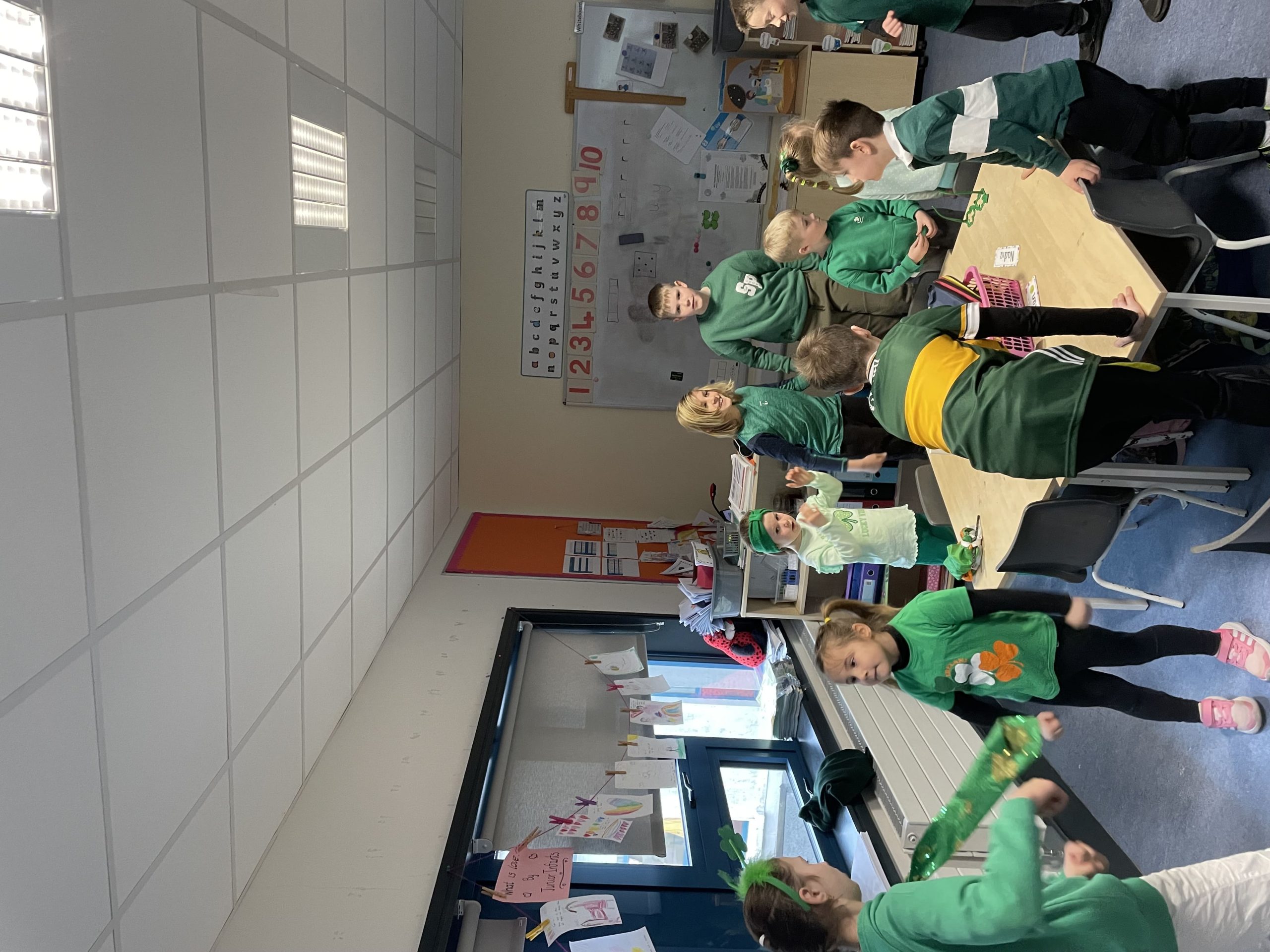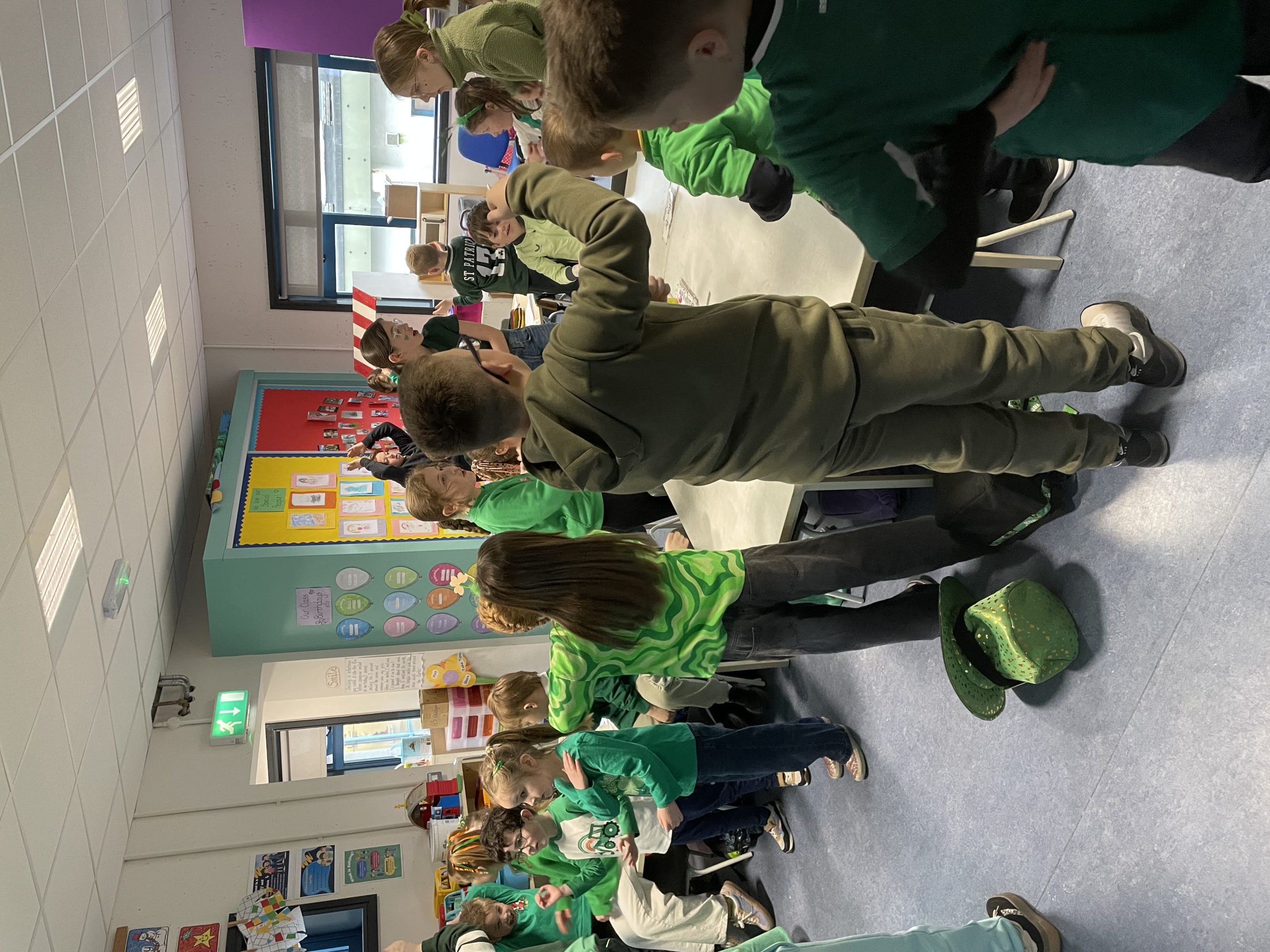 We all had a super Seachtain na Gaeilge. The Irish Committee did a fantastic job, with thanks to them. Third to Sixth class took part in a Table Quiz in the hall. Everyone really enjoyed it. Second and Third class went on a Treasure Hunt. They had great craic. The Senior classes visited the Junior classes to teach some poems and rhymes. They were excellent. On Friday we had a big céilí out in the yard. It was fabulous.