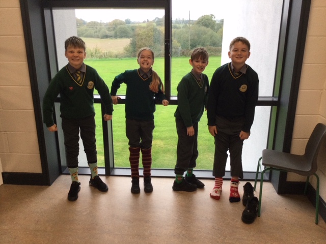 We celebrated Walk to School Week from October 13th-17th 2025. The Green-Schools Committee has been very busy this month organising Walk to School Week! Every morning we enjoyed music in the playground to start the day off on a happy note. There was a fun art competition, children collected nature items for our nature tables on their way to school and we wore our craziest socks for Wacky Socks Wednesday to celebrate National Walk to School Week! All classes made their best effort to walk to school or to park and stride as often as possible during the week. Our class representatives took the total number of walkers in every class each morning and we rewarded the classes who made the greatest effort. Well done also to our fantastic art competition winners.